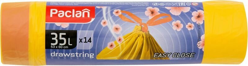 Paclan Drawstrings Aroma Мешки для мусора с тесьмой ПНД желтый 35 л. 14 шт. в рулоне