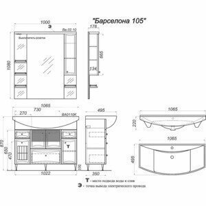 Модуль под раковину Aqwella Barcelona 105х51х88см, арт. BA0110K, с бельевой корзиной, 3 ящика + 3 дверцы, белый