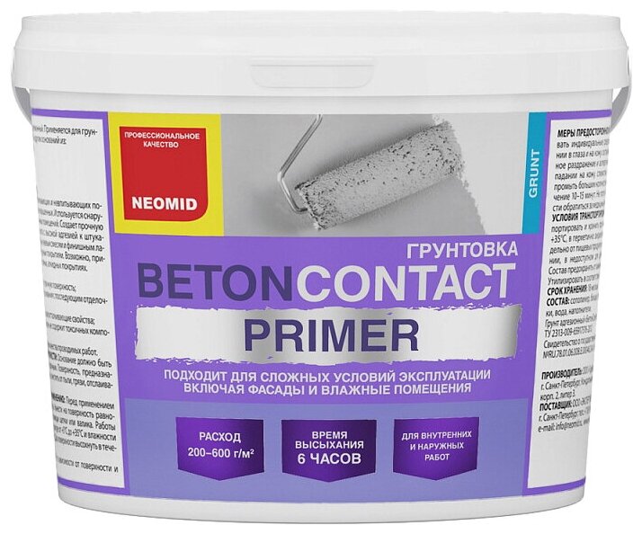 Грунтовка Neomid BetonContact Primer 1.3кг для Фасада и Внутренних Работ / Неомид.