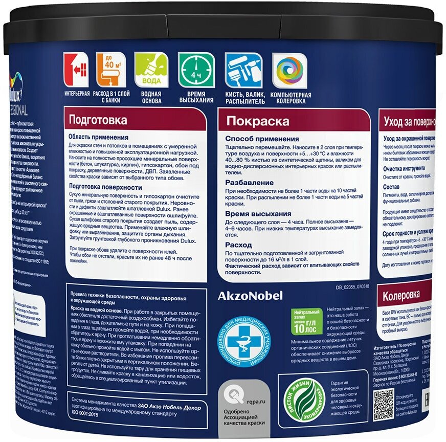 СохранитьКраска в/д dulux trade diamond extra matt база bс для стен и потолков 2,25л бесцветная, арт.5273958 интересное: