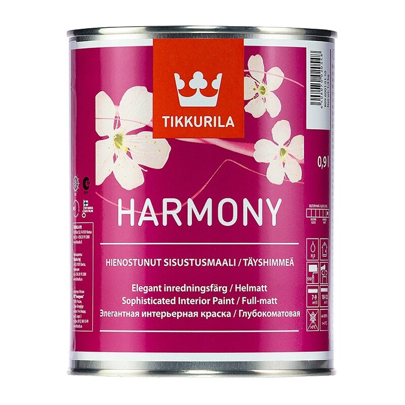 Tikkurila Harmony / Тиккурила Гармония глубокоматовая краска для стен и потолков 0.9 литра