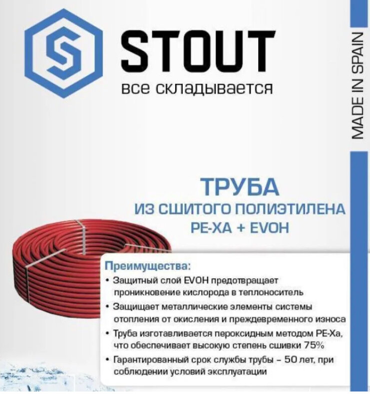 Ниже Вы можете прочитать отзывы на Труба для теплого пола STOUT PEX-A, 16 мм x 2,0 мм, 500 м из сшитого полиэтилена с кислородным слоем (SPX-0002-001620), ознакомится с подробными характеристиками, посмотреть интересные обзоры и фотографии на Труба для теплого пола STOUT PEX-A, 16 мм x 2,0 мм, 500 м из сшитого полиэтилена с кислородным слоем (SPX-0002-001620).