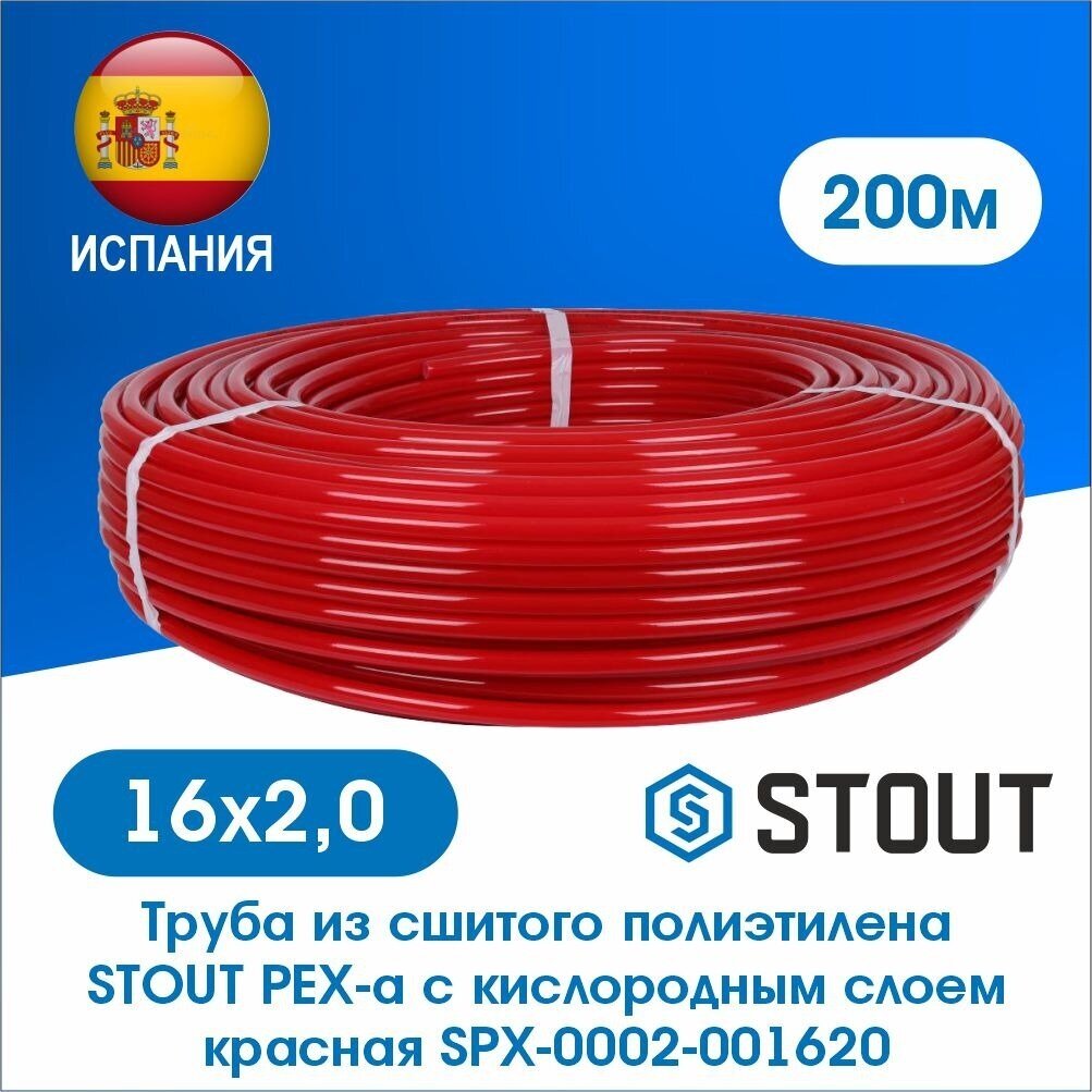 SPX-0002-101620 STOUT 16х2,0 (бухта 100 метров) PEX-a труба из сшитого полиэтилена с кислородным слоем, красная