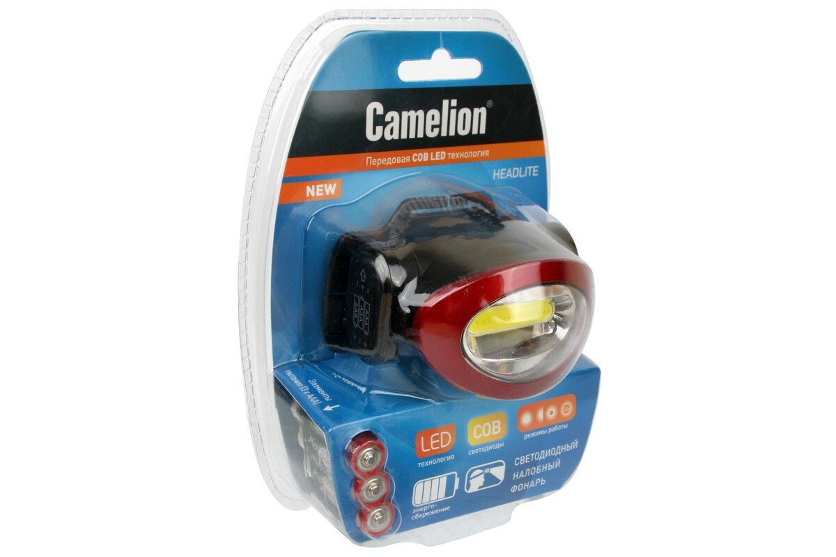 (фонарь налобн, черн., COB, 4 реж, 3XLR03 в компл, пласт, откр. блист), CAMELION LED5382 (2 шт.)