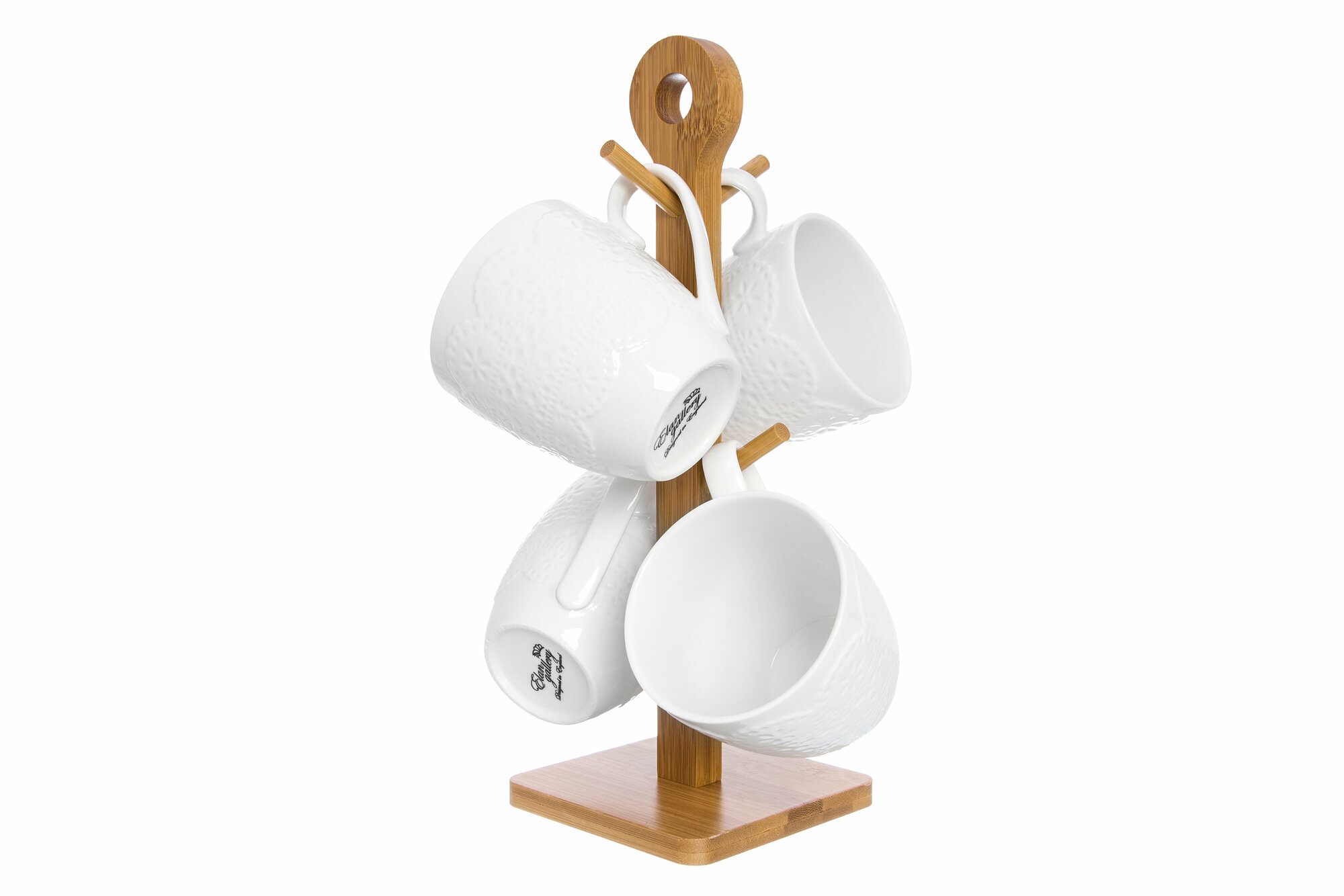 Набор 4 кружек 350 мл 20*20*31 см "Кружево" на дерев. подставке с ручкой