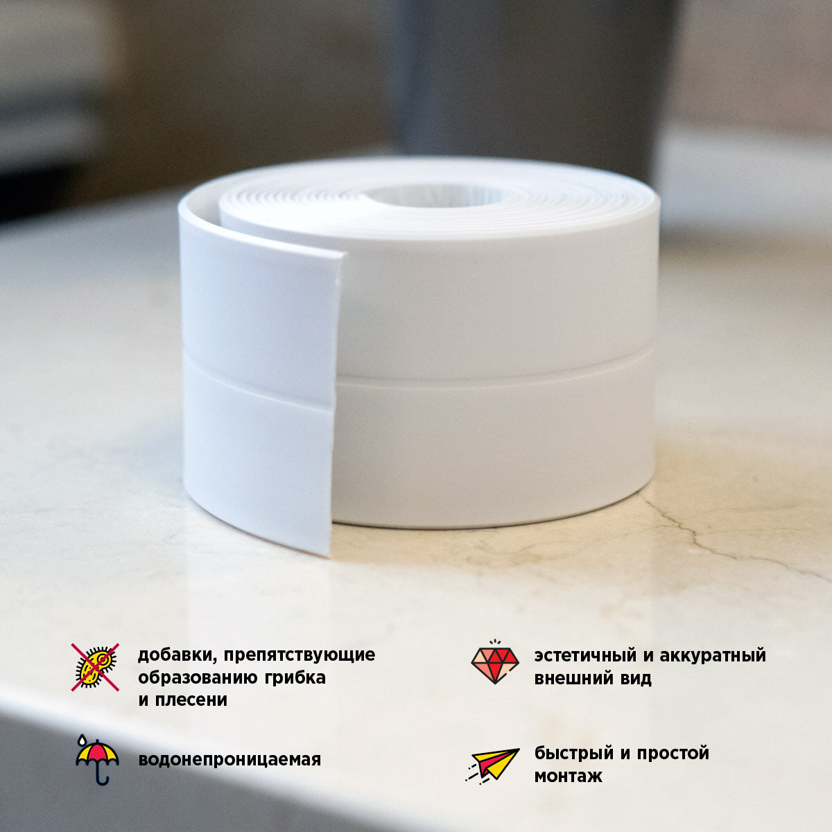Бордюрная самоклеящаяся лента для ванн и раковин, 12.8 мм x 3.35 м