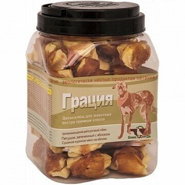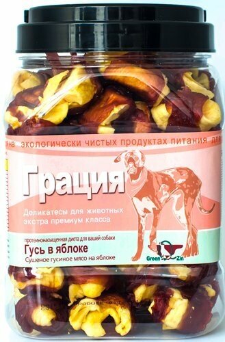 Грин Кьюзин 057 Лакомство для собак Грация (сушеное гусиное мясо на яблоке) туба 750гр
