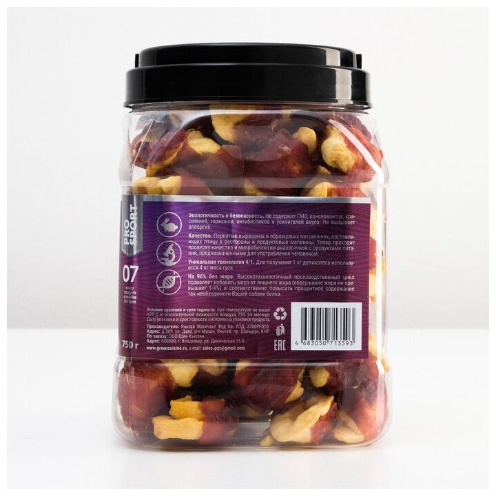 Лакомство для собак Green Qzin Грация, сушеное гусиное мясо на яблоке, 750 г