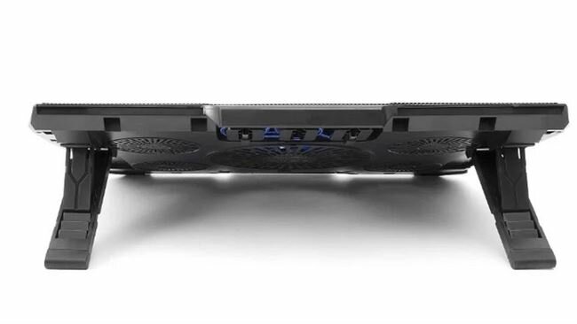- есть регулировка наклона - относительно тихий на максимальных оборотах - в целом хорошо собран, но хлипкость присутствует - есть удерживающий от сползания ноутбука держатель |
