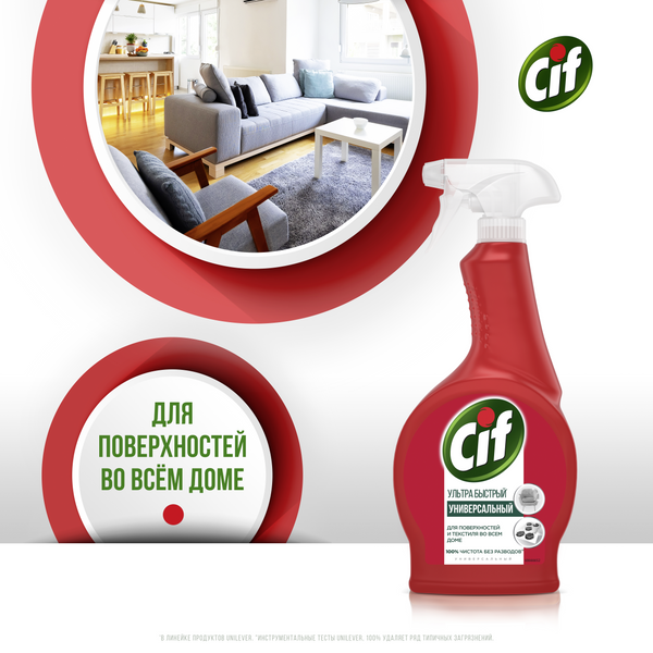 Купить Cif Чистящий спрей Универсальный Ультра быстрый, 0.5 л, 0.5 кг, 1 уп., красный