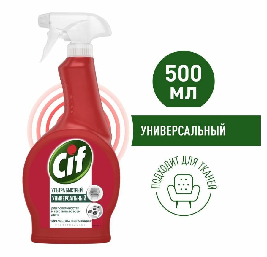 СохранитьCif Чистящий спрей Универсальный Ультра быстрый, 0.5 л, 0.5 кг, 1 уп., красный интересное: