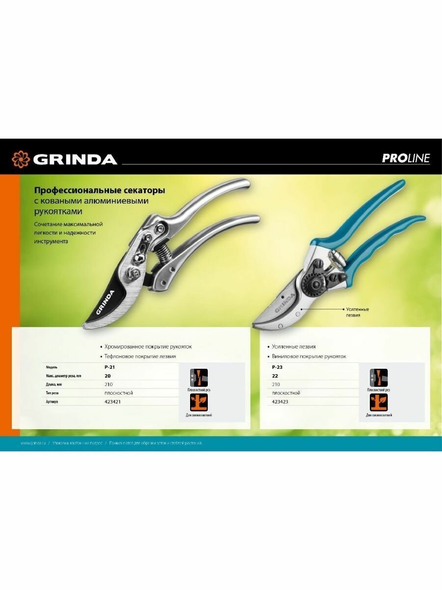 GRINDA P-23, 210 мм, усиленные лезвия, закалённая сталь, алюминиевые кованые рукоятки, плоскостной секатор, PROLine (423423)