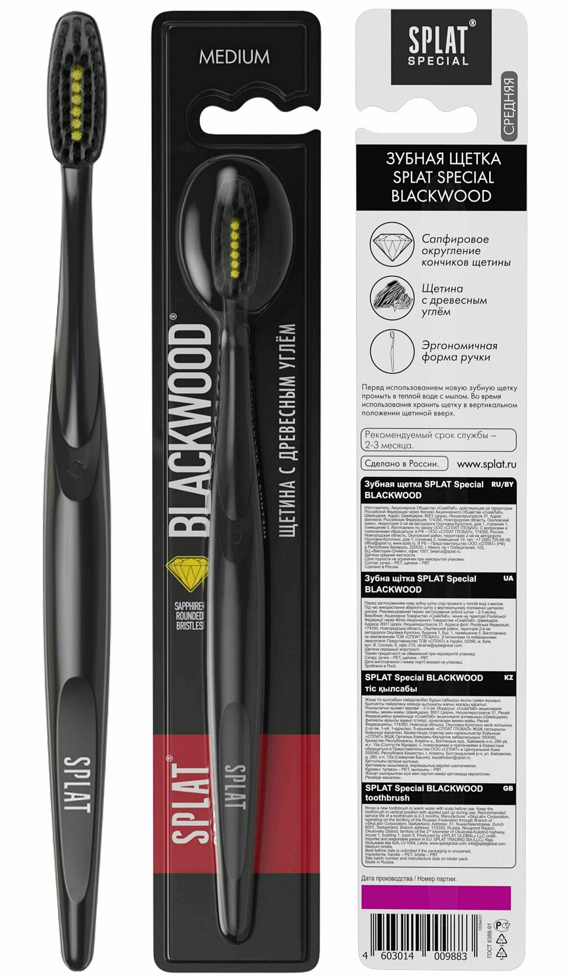 Набор из 3 штук Зубная щетка SPLAT 1шт BLACKWOODMedium / Средняя