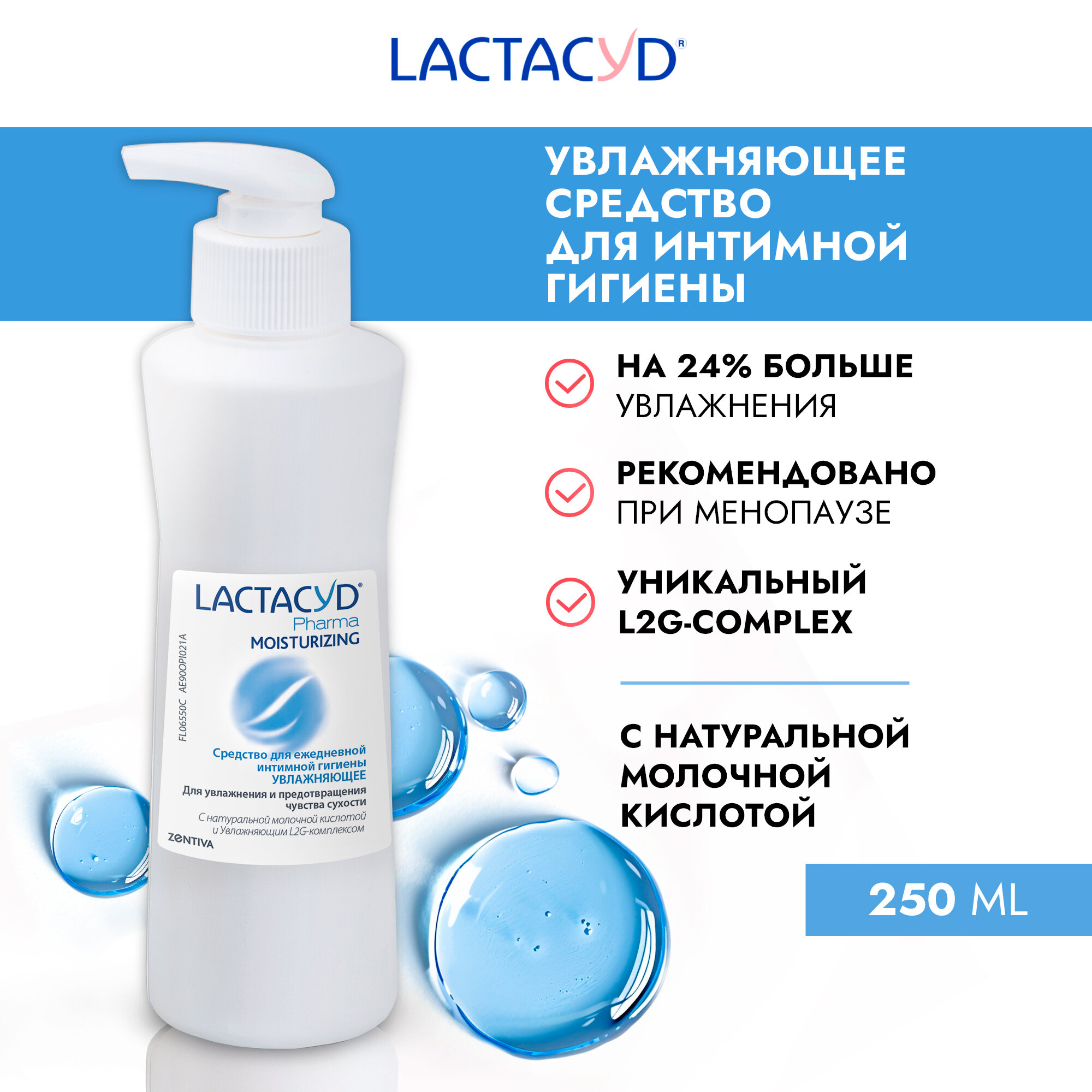Lactacyd Pharma Moisturizing увлажняющий гель для интимной гигиены при сухости / женский интимный гель против сухости в период менопаузы и при климаксе Лактацид Фарма Увлажняющий, 250мл, pH 3.5