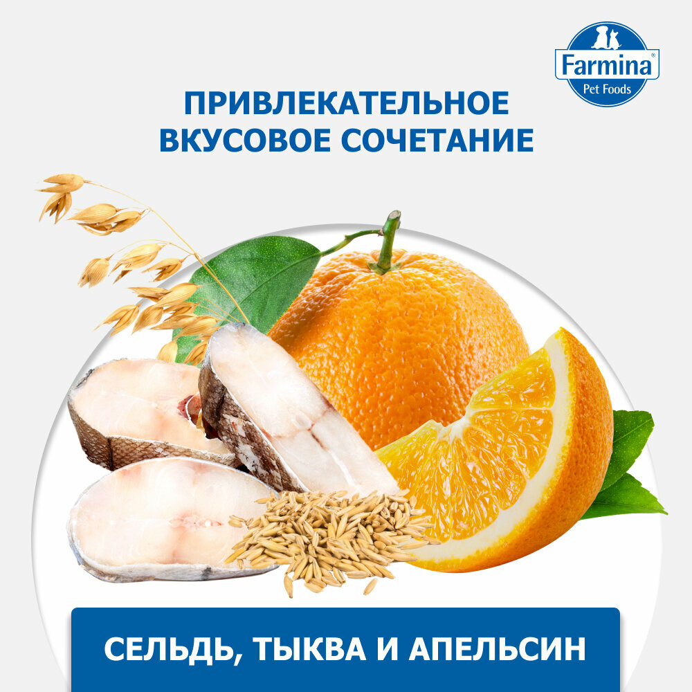 Сухой Низкозерновой корм Фармина для взрослых кошек Треска с Пшеницей Овсом и Апельсином 5 кг