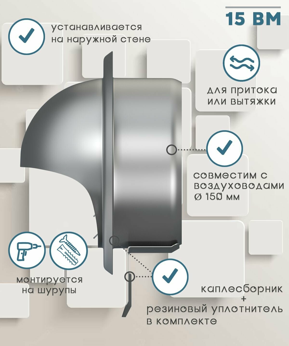 15ВМ, Выход стенной вентиляционный вытяжной металлический с фланцем D150