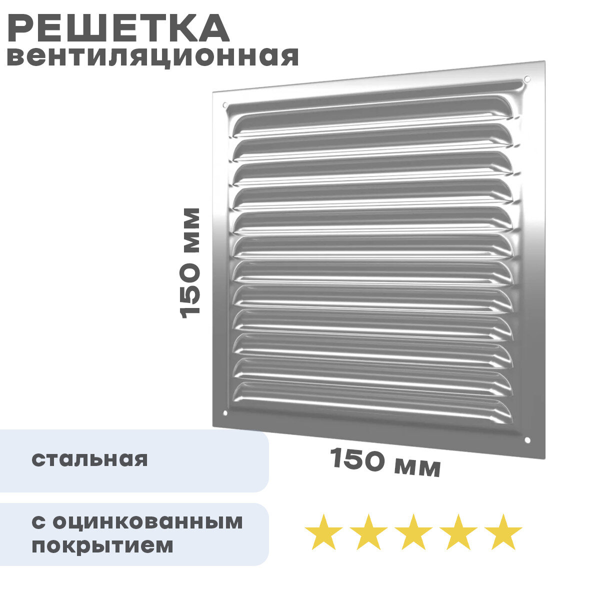 1515МЦ, Решетка вентиляционная вытяжная стальная с оцинкованным покрытием 150х150