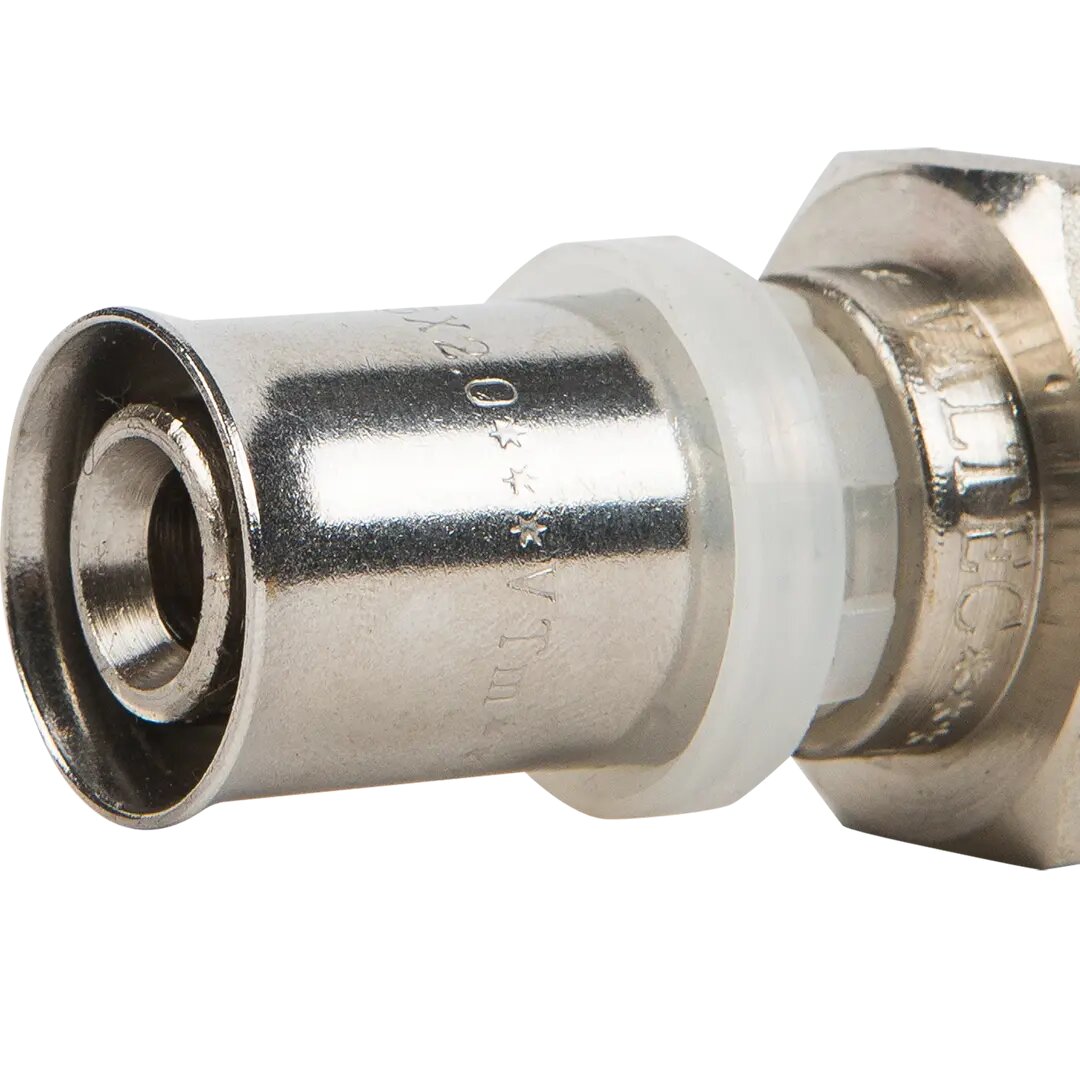 Пресс-муфта Valtec наружная резьба 3/4"x16 мм никелированная латунь VTm.201.N.001605