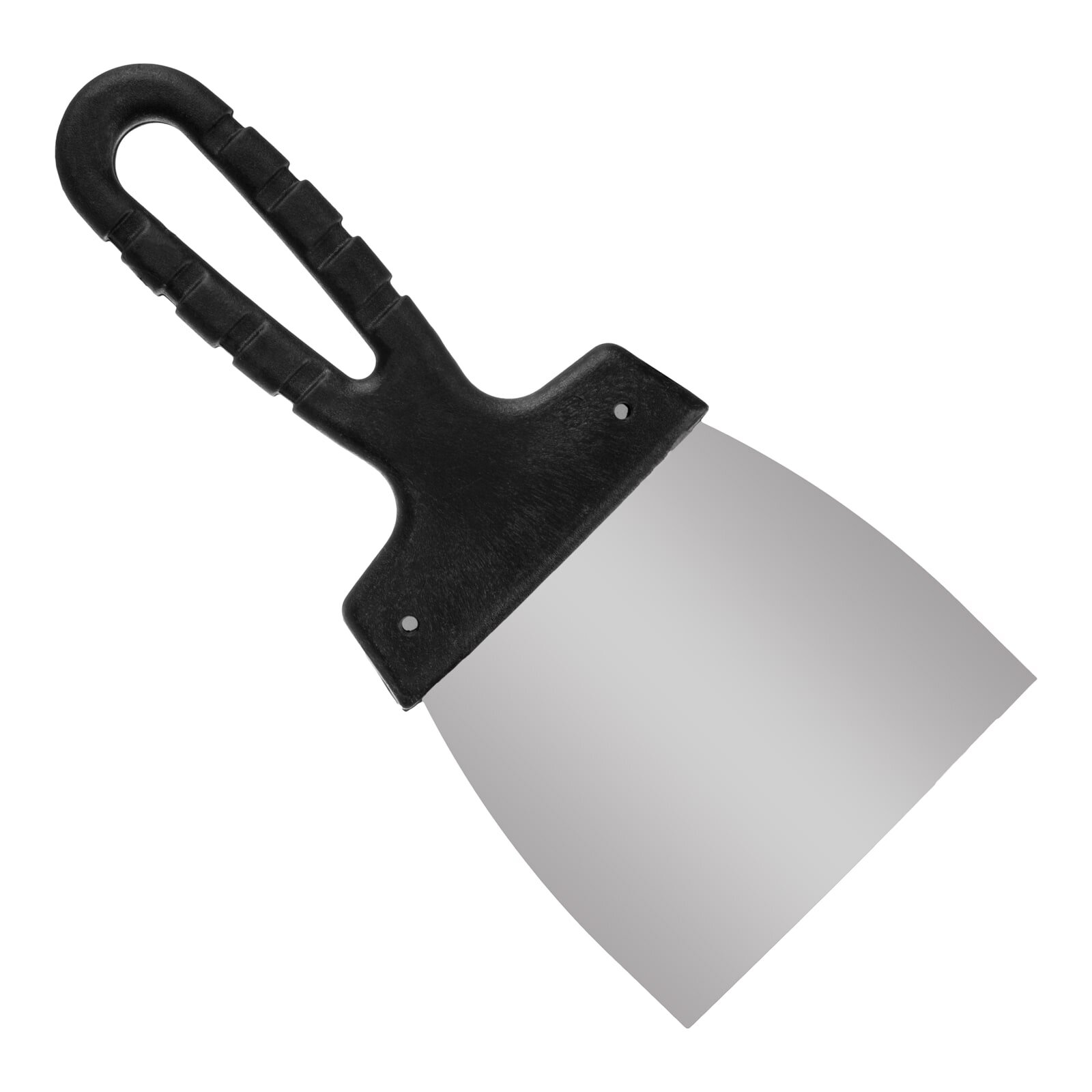 Шпатель строительный РемоКолор Мастер 12-5-100 с эргономичной рукояткой из пластика, с лезвием из нержавеющей стали шириной 100мм, черный, размером 15х160х100мм / скребок (комплект из 16 шт)