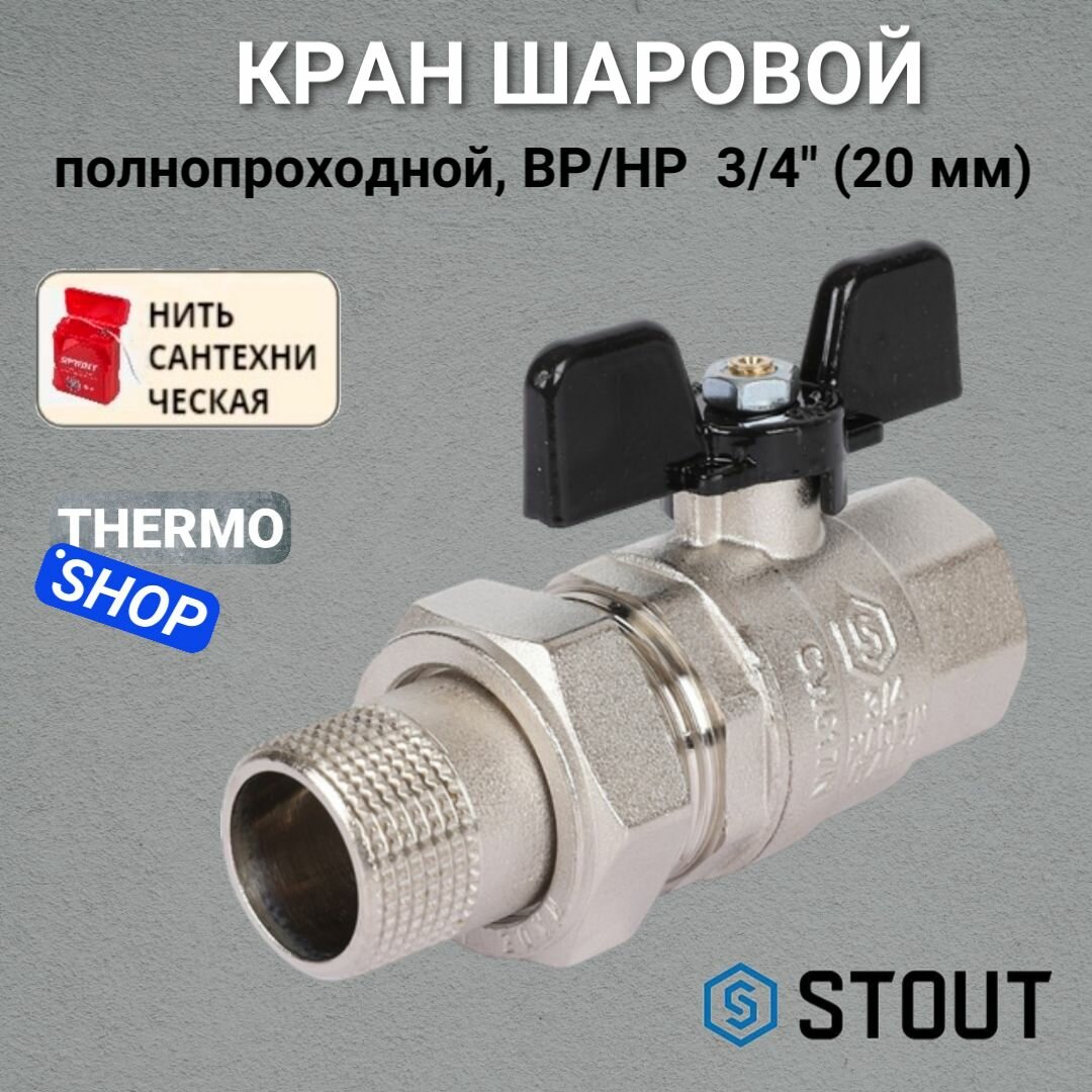 SVB-0007-000020 STOUT Кран шаровой полнопроходной с "американкой", ВР/НР, ручка бабочка 3/4