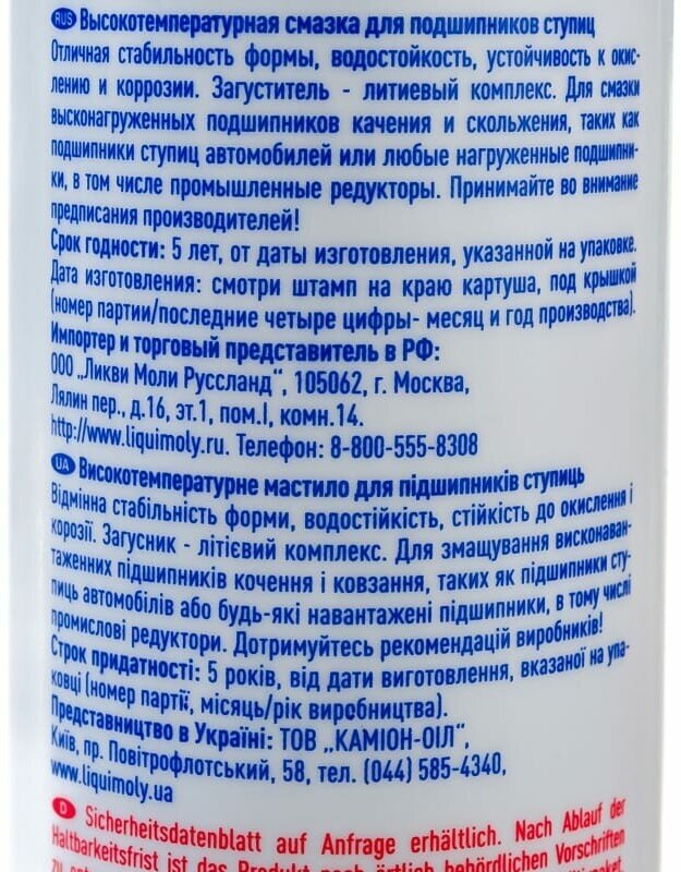 LIQUI MOLY Смазка высокотемпературная для ступиц подшипников LIQUI MOLY 0,4л LM 50 Litho HT