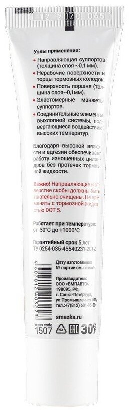 1507 Смазка Для Суппортов Мс 1600, 30г Туба В Пакете ВМПАВТО арт. 1507