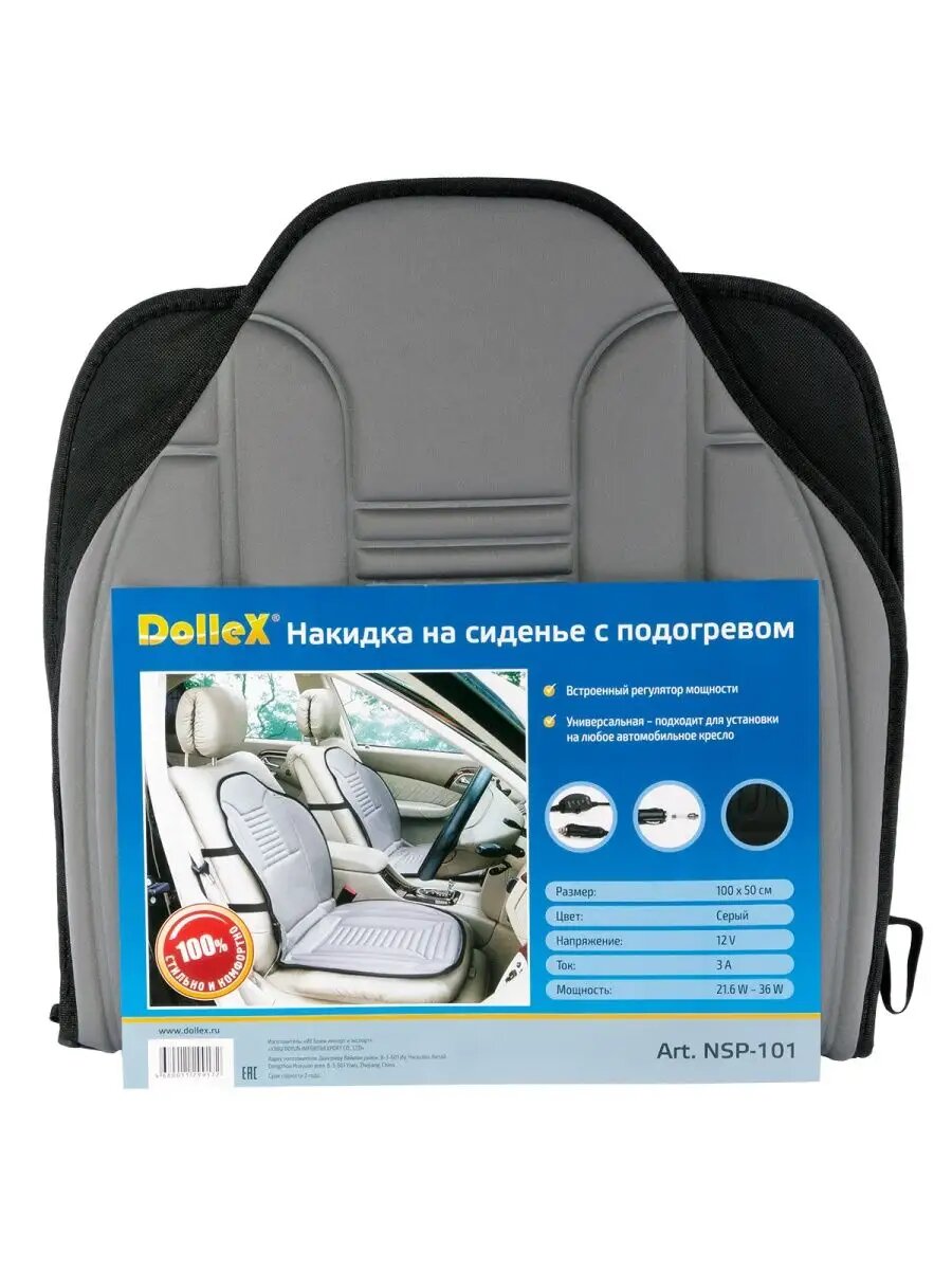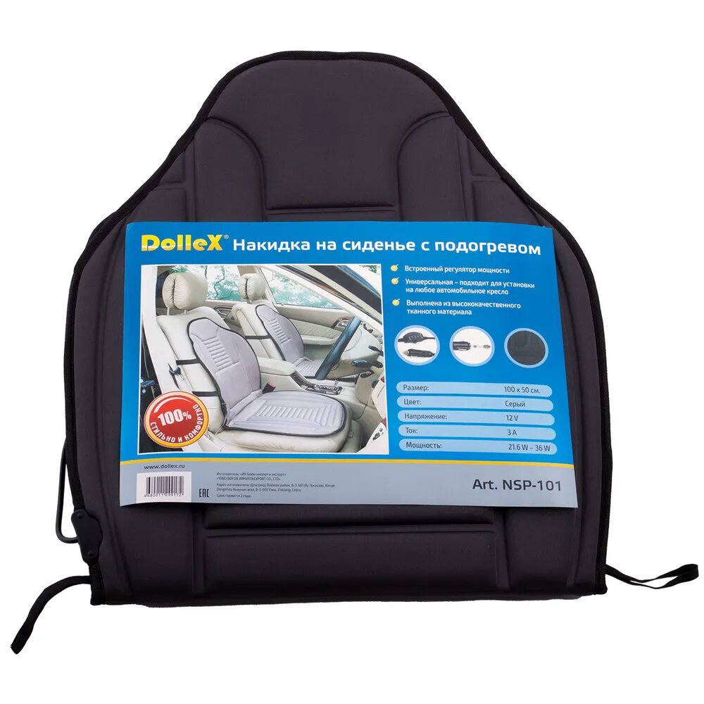 Накидка на сиденье с подогревом 1000 х 500 мм со спинкой, регулятором, серая DOLLEX NSP-101