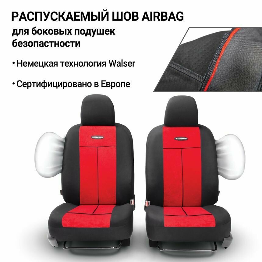 AUTOPROFI TT902VBKRD TT-902V BK RD_чехлы для сиденья TT, передний ряд, задний ряд, AIRBAG, чёрн. красный