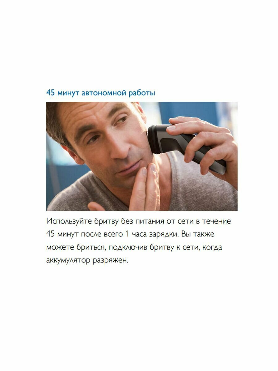 + Отсек для волос, не обязательно бриться над ванной + Заряжается за час, а не за 8 как у его братьев |