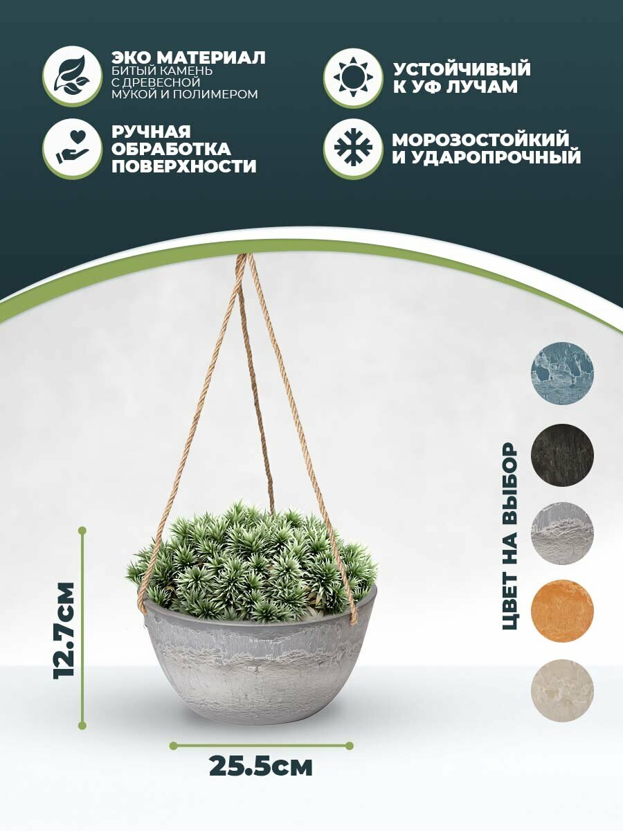 Горшок для Растений 4Л Подвесное на Веревке Светлый Древесный Уголь 255*127(1)GREEN Ship H-11VD25 .