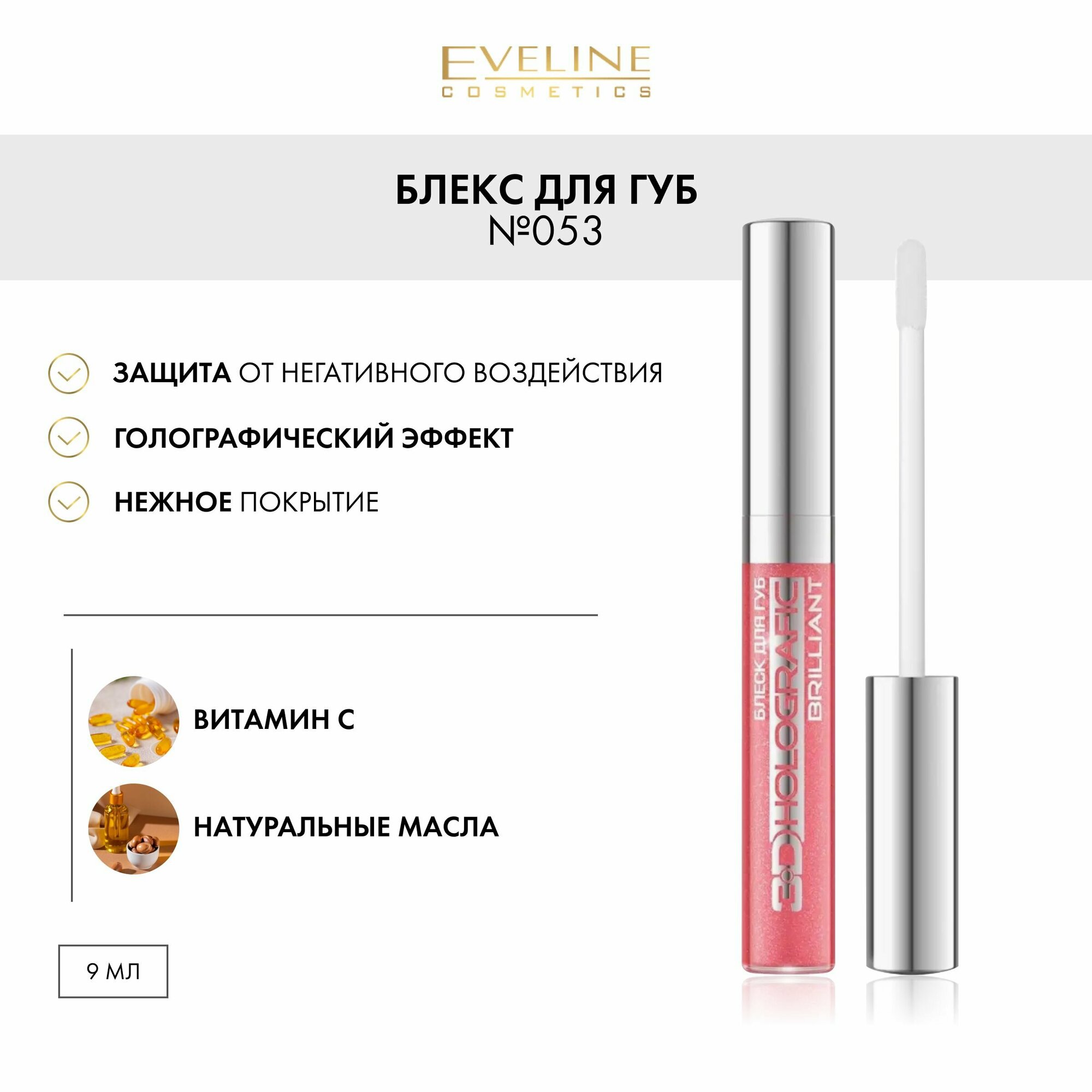 Блеск для губ EVELINE HOLOGRAFIC BRILLIANT №053 с голографическим эффектом, 9 мл