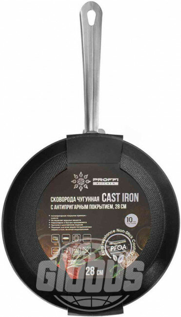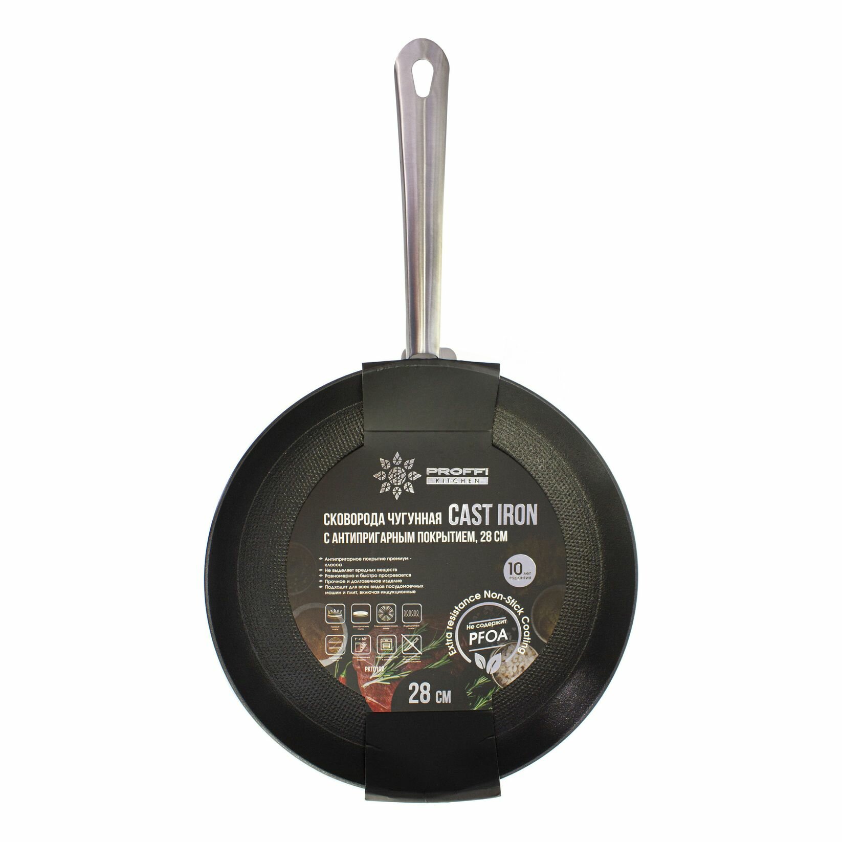 Сковорода чугунная PROFFI KITCHEN PKT0102 CAST IRON с антипригарным покрытием 28 см