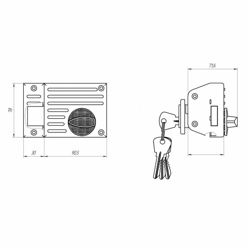 Замок Накладной ЗН1-2.1 ЧЕР (16) Зенит
