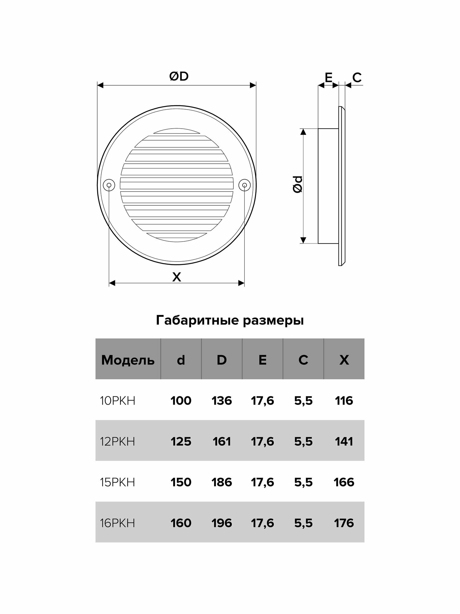 Решетка вентиляционная РКН фланец D160 D196 ASA Gray