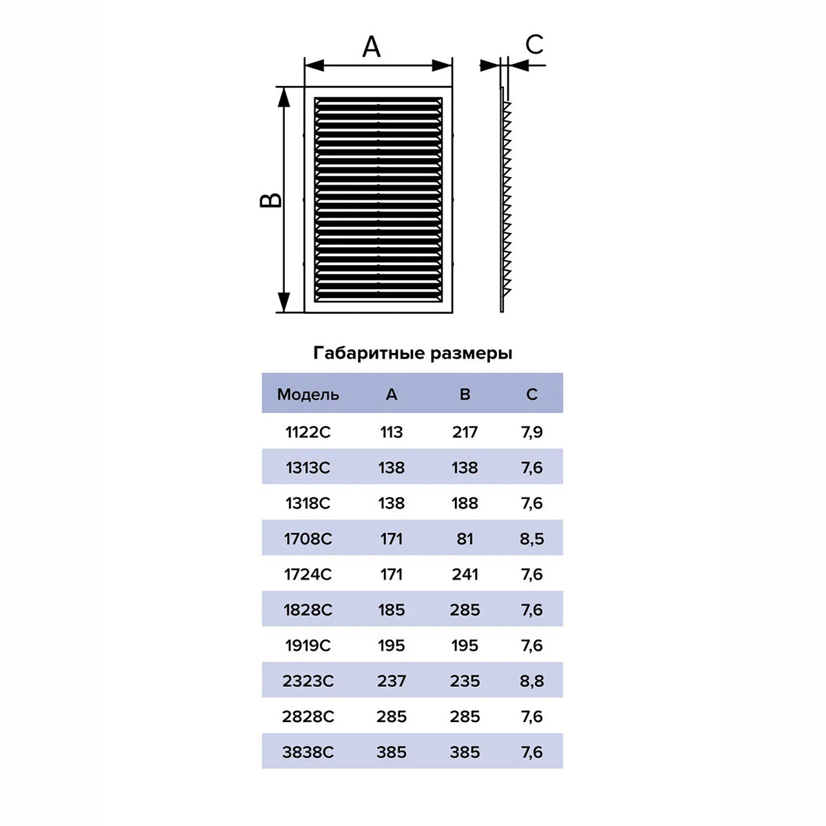 Вентиляционная решетка ERA 2121П 208 x 208 мм
