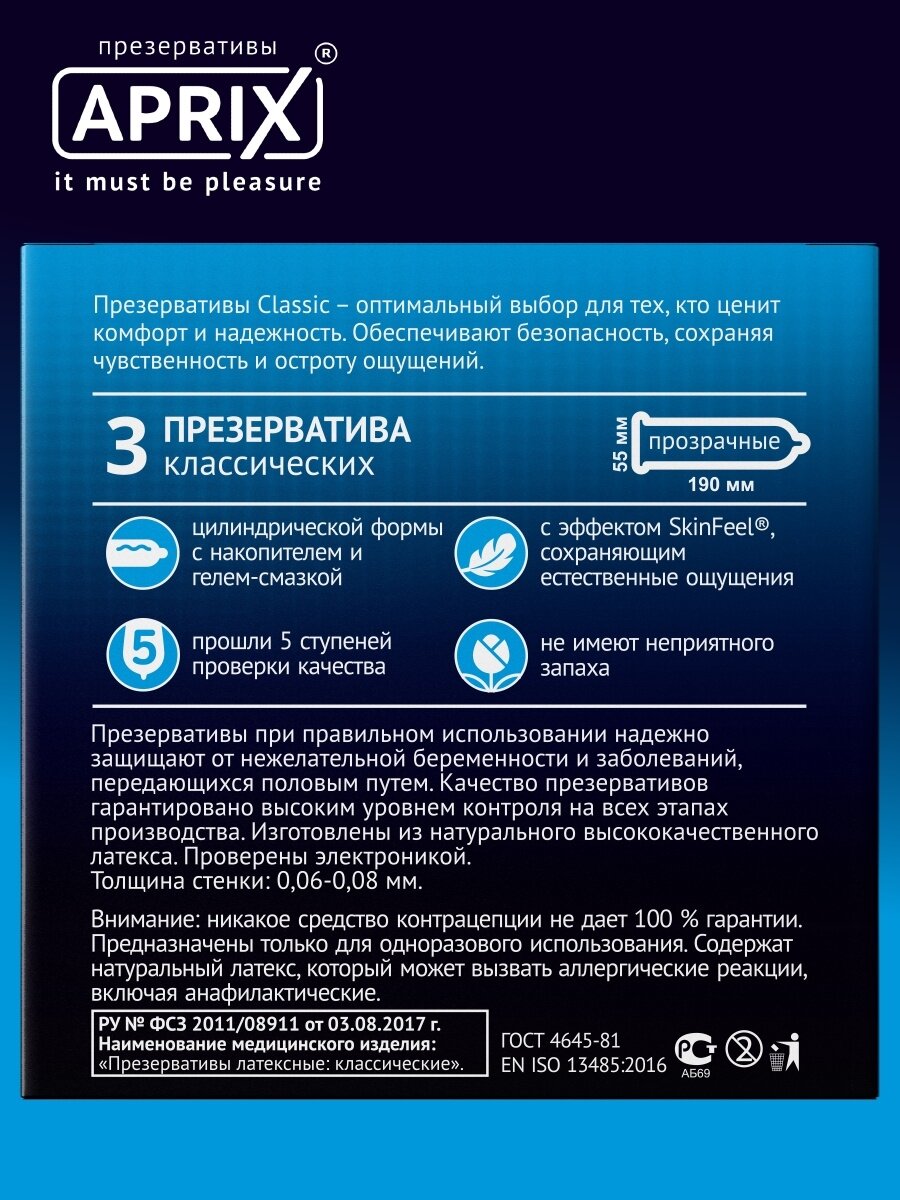Презервативы классические Classic Aprix/Априкс 3шт интересное: