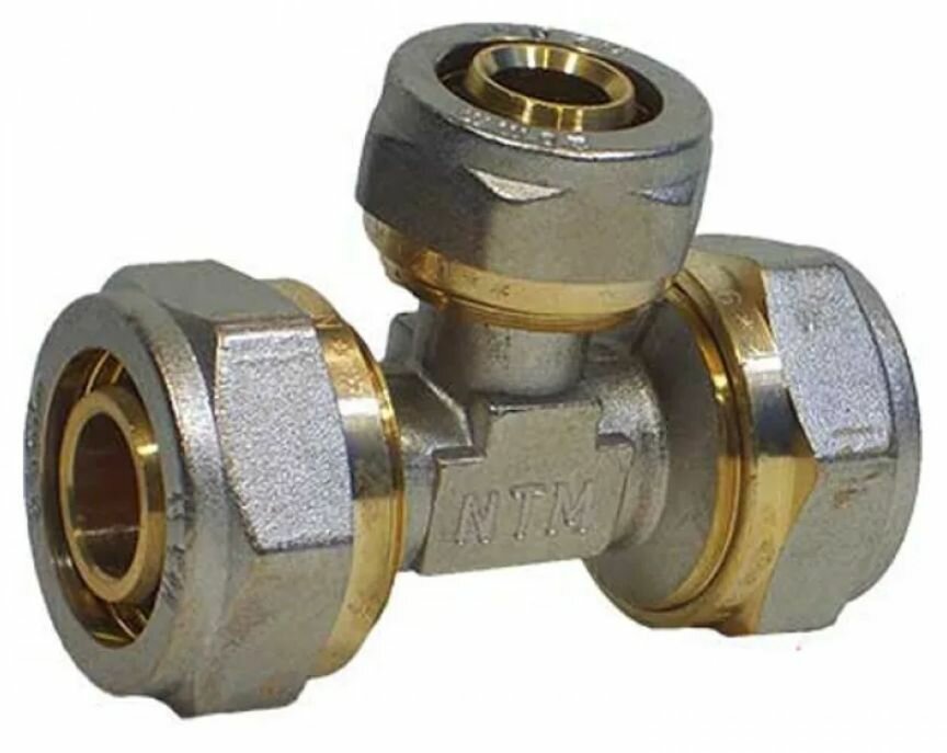 Тройник м/п Valtec обжим 26х20х26мм, 10бар, t-115*C, никель