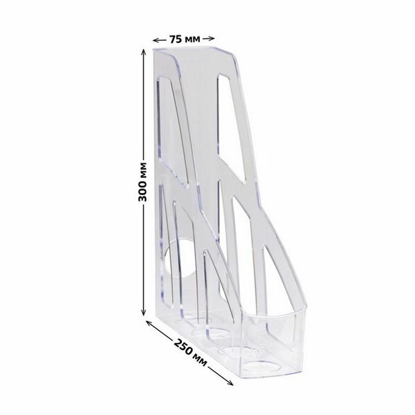 Лоток для бумаг Лоток вертикальный для бумаг СТАММ "Лидер" (250х75х300 мм), прозрачный, ЛТ130