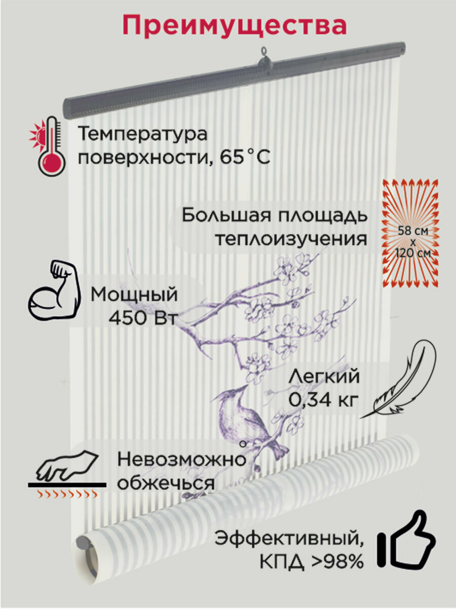 СохранитьИнфракрасный настенный пленочный обогреватель "Бархатный Сезон" Птичка На Ветке Сакуры интересное:
