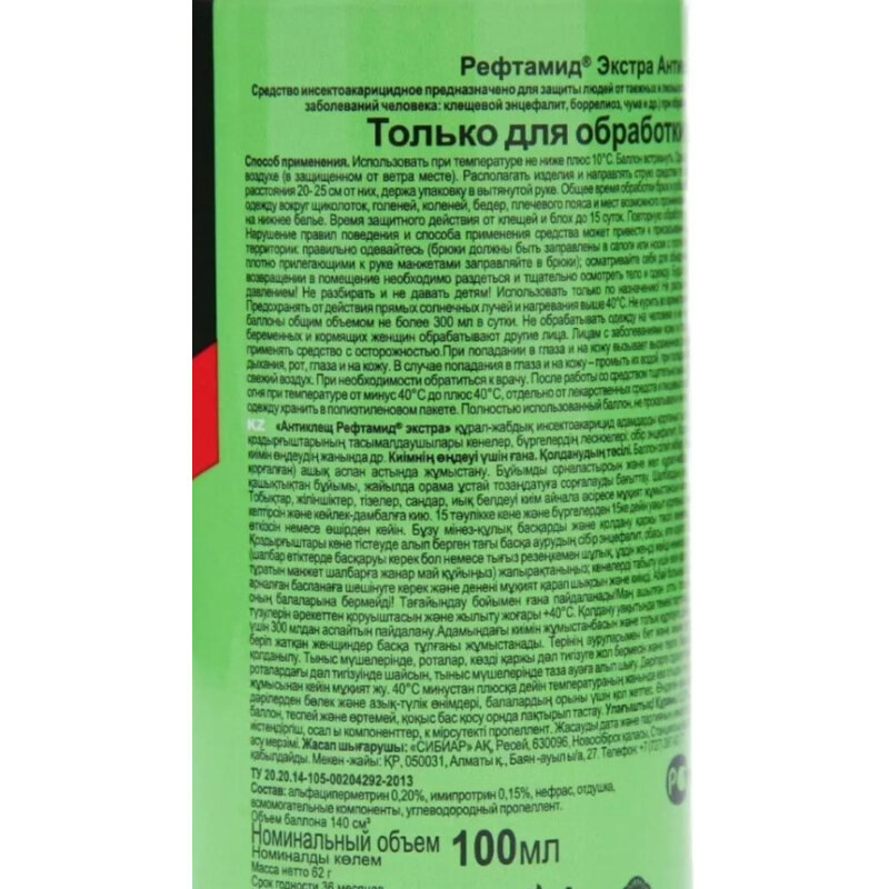 Аэрозоль Рефтамид Антиклещ Экстра, 150 г, 145 мл, черный/зеленый