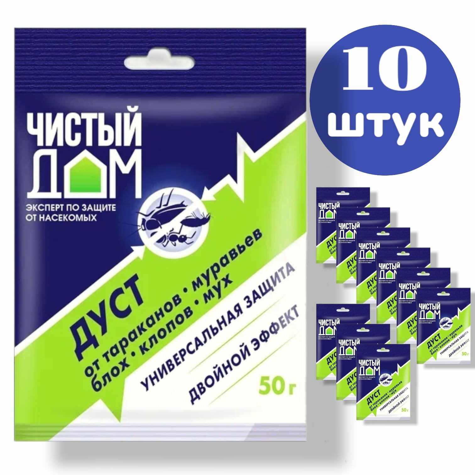 Купить дуст от тараканов, муравьев, блох, клопов, мух. чистый дом. 10 штук