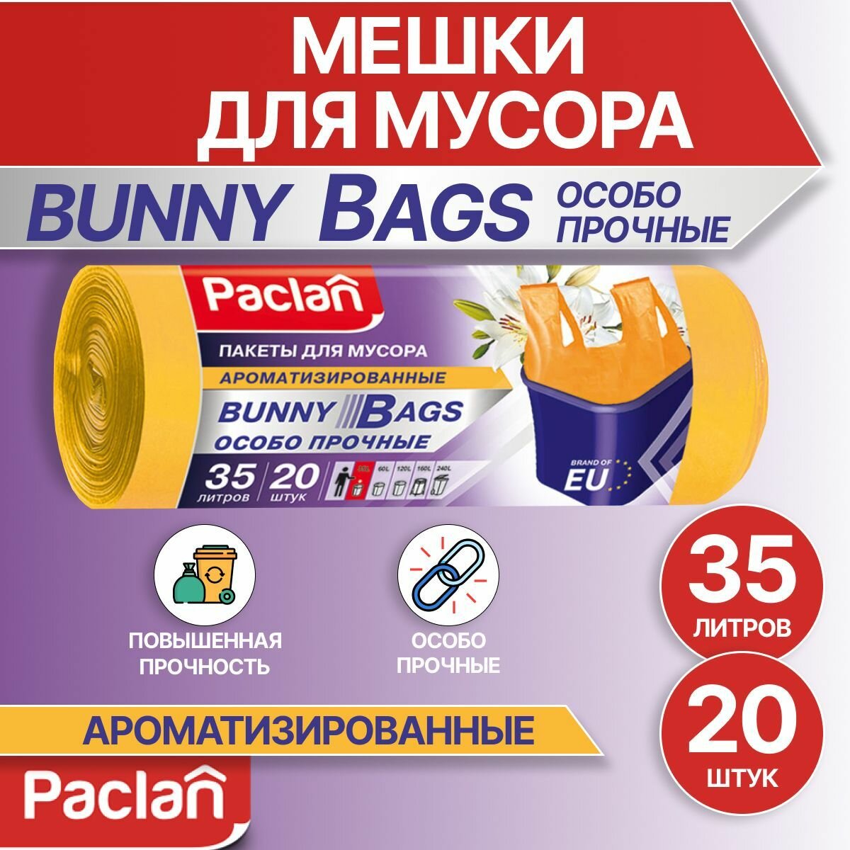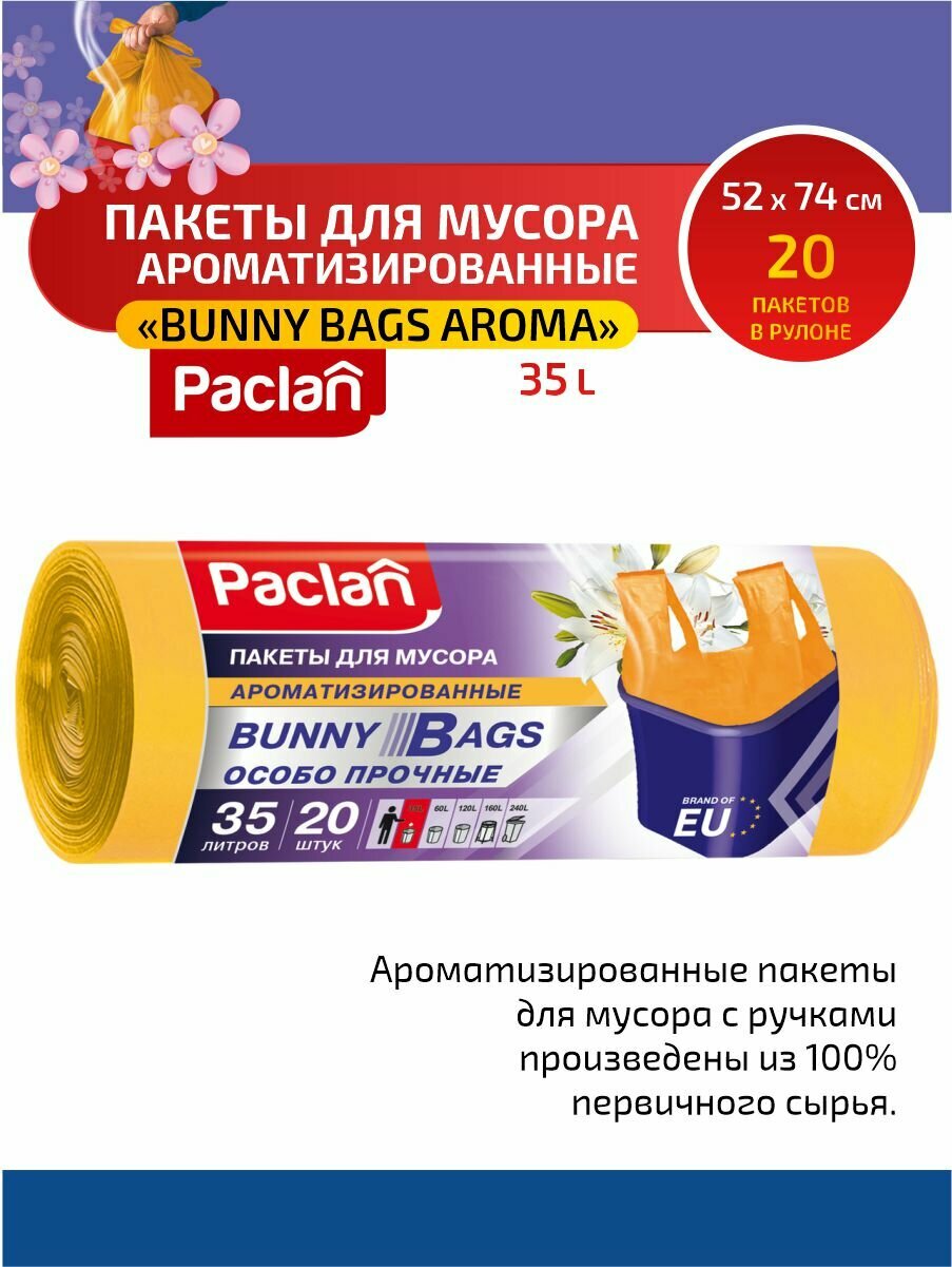 Paclan Мешки для мусора с ручками Bunny Bags Aroma 35л 20шт. (ПНД) (желтый)