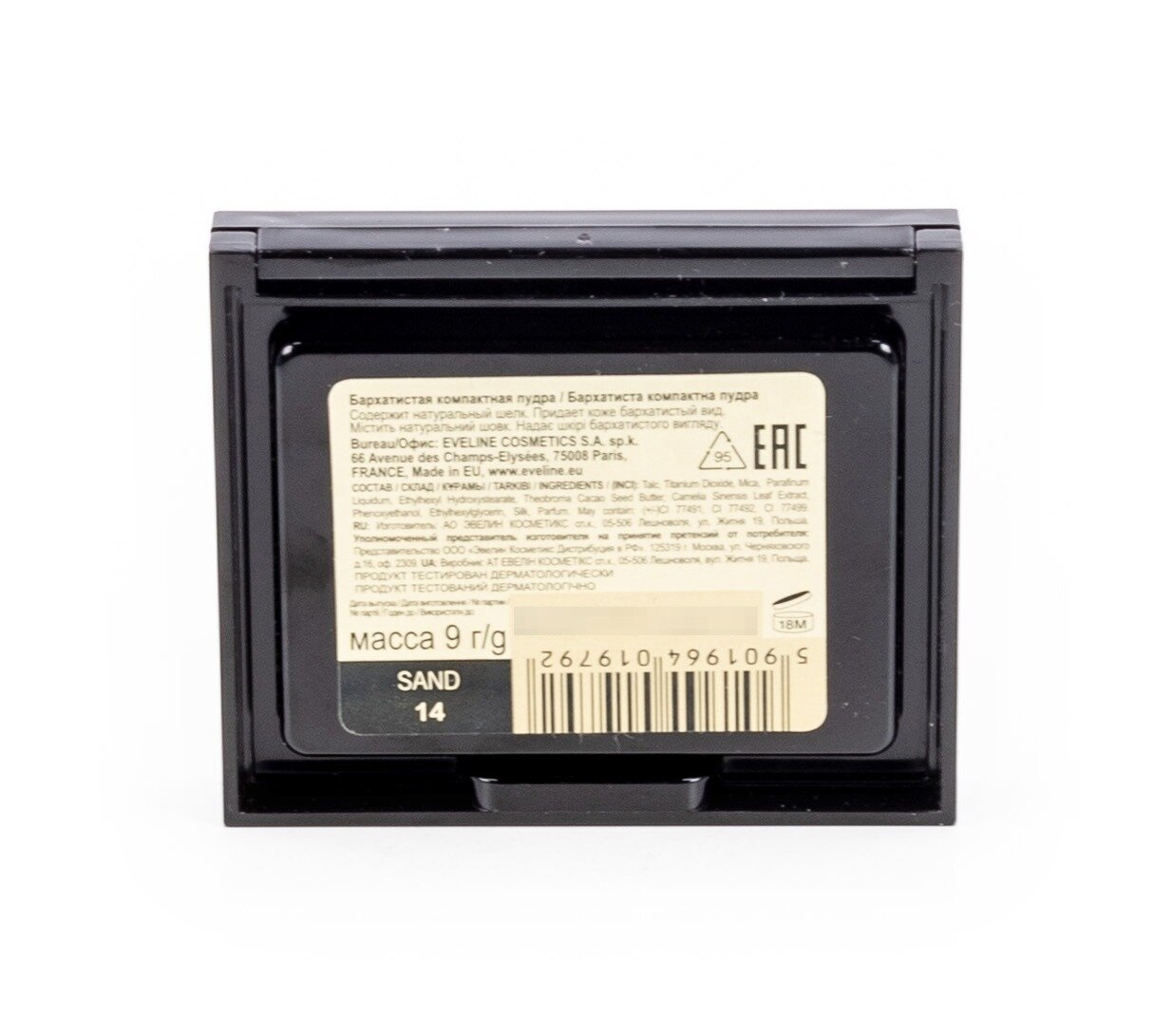 Пудра для лица EVELINE BEAUTY LINE бархатистая компактная №14 SAND, 9 гр