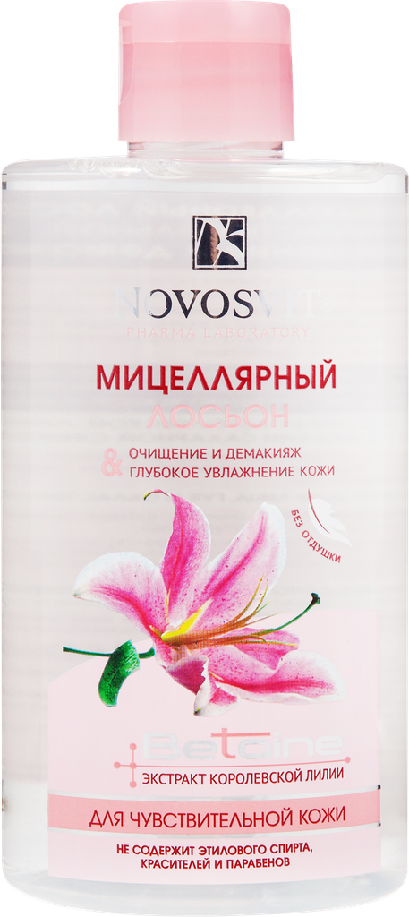 Новосвит Мицеллярная вода-лосьон для лица для чувствительной кожи с экстрактом королевской лилии очищение глубокое увлажнение без отдушек 460мл /