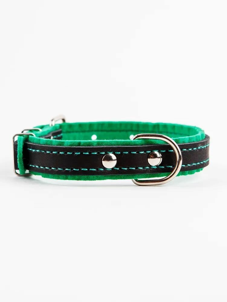 Ошейник кожаный с подкладом "Фетр", 1,6 см, ОШ 20-28 см, чёрный/зелёный