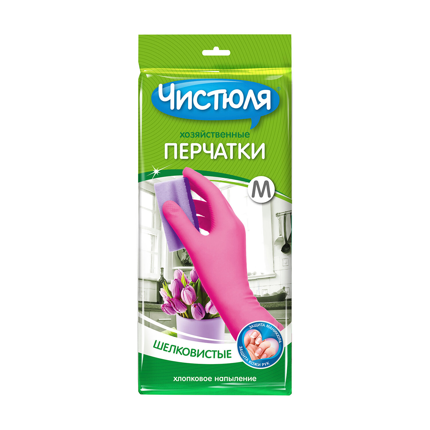 Чистюля перчатки хозяйственные M(8) из латекса с хлопковым напылением