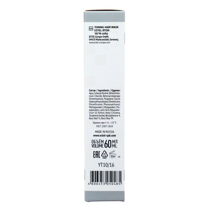 Маска тонирующая для волос ESTEL ятон, 10/16 Пепельный, 60мл * 3шт