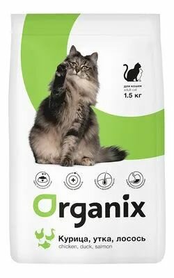 Купить Корм сухой Organix для кошек, курица, утка и лосось, 1.5 кг