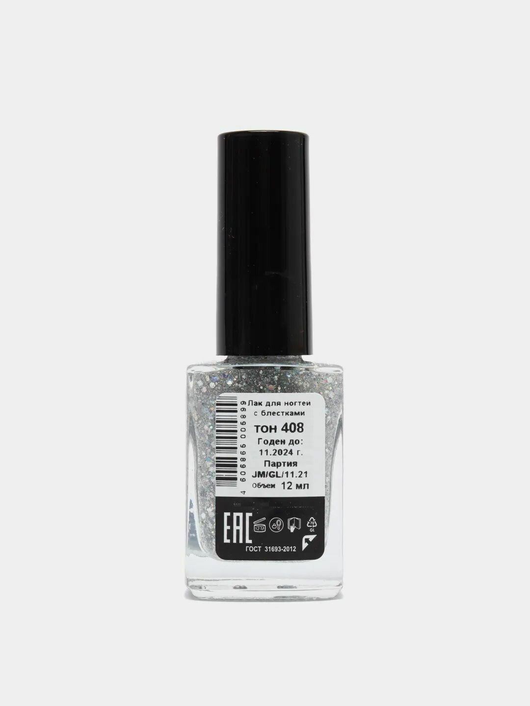 Лак для ногтей, тон 408 блёстки серебристые мульти, мелкие, 12 мл