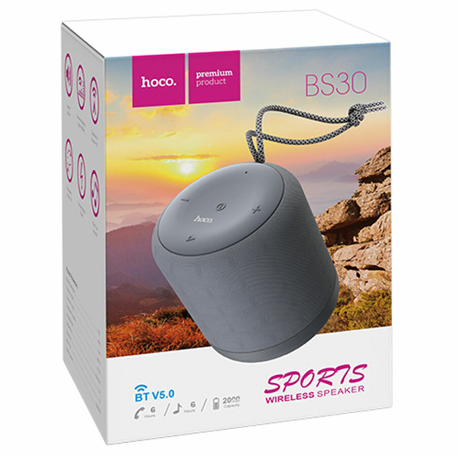Портативная колонка Hoco BS30, 5 Вт, 2000 мАч, BT5.0, microSD, AUX, серая